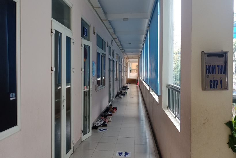 Khu vực hành lang được trang bị rèm che để tránh ánh sáng đảm bảo giấc ngủ cho học sinh