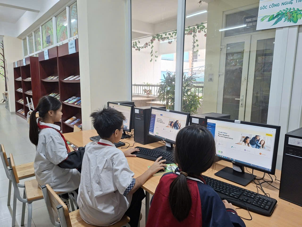 Ngay trong buổi sáng tổ chức, các em học sinh đã tự tin tham dự vòng thi cấp trường Cuộc thi "Tài năng Tin học trẻ quốc tế". Mỗi em học sinh làm 01 bài thi trực tuyến trên phần mềm Gmetrix với bài thi IC3 gồm 35 câu hỏi dành cho khối 6 và khối 7; bài thi Gen AI với 45 câu dành cho học sinh khối 8 và 9 bằng ngôn ngữ tiếng Việt hoặc tiếng Anh. Kết thúc vòng thi cấp trường các em học sinh đã hoàn thành xuất sắc bài thi của mình với bạn cao điểm nhất đạt 822 điểm.