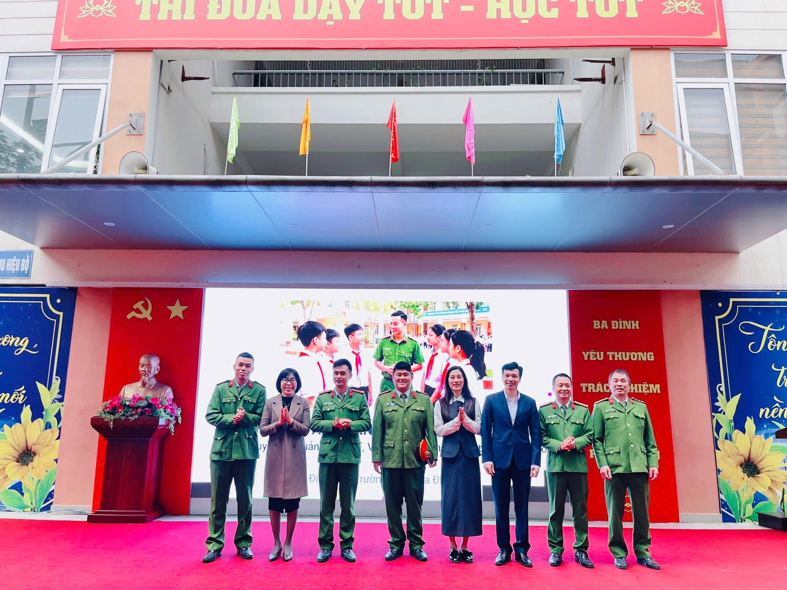 Tham dự buổi tuyên truyền có Ban Giám hiệu Trường THCS Ba Đình, cùng toàn thể cán bộ, giáo viên và học sinh nhà trường. Về phía lực lượng Công an, có Đại úy Vũ Hoàng cùng các cán bộ Công an phường Ngọc Hà.