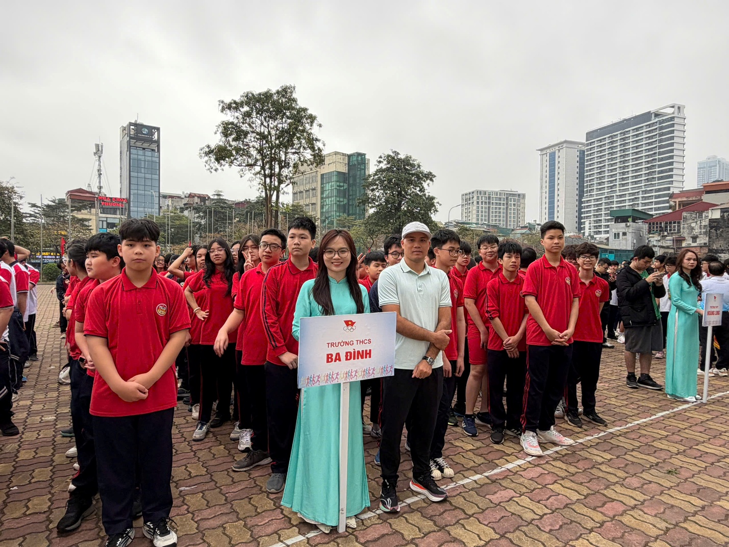 Hưởng ứng sự kiện ý nghĩa này, thầy và trò Trường THCS Ba Đình đã tích cực tham gia với tinh thần hào hứng và trách nhiệm. Học sinh các lớp 7A1, 7A2, 7A3, 7A4 và 7A9 có mặt từ sớm, cùng hòa mình vào không khí sôi nổi của ngày hội thể thao, góp phần lan tỏa phong trào rèn luyện sức khỏe trong học đường.