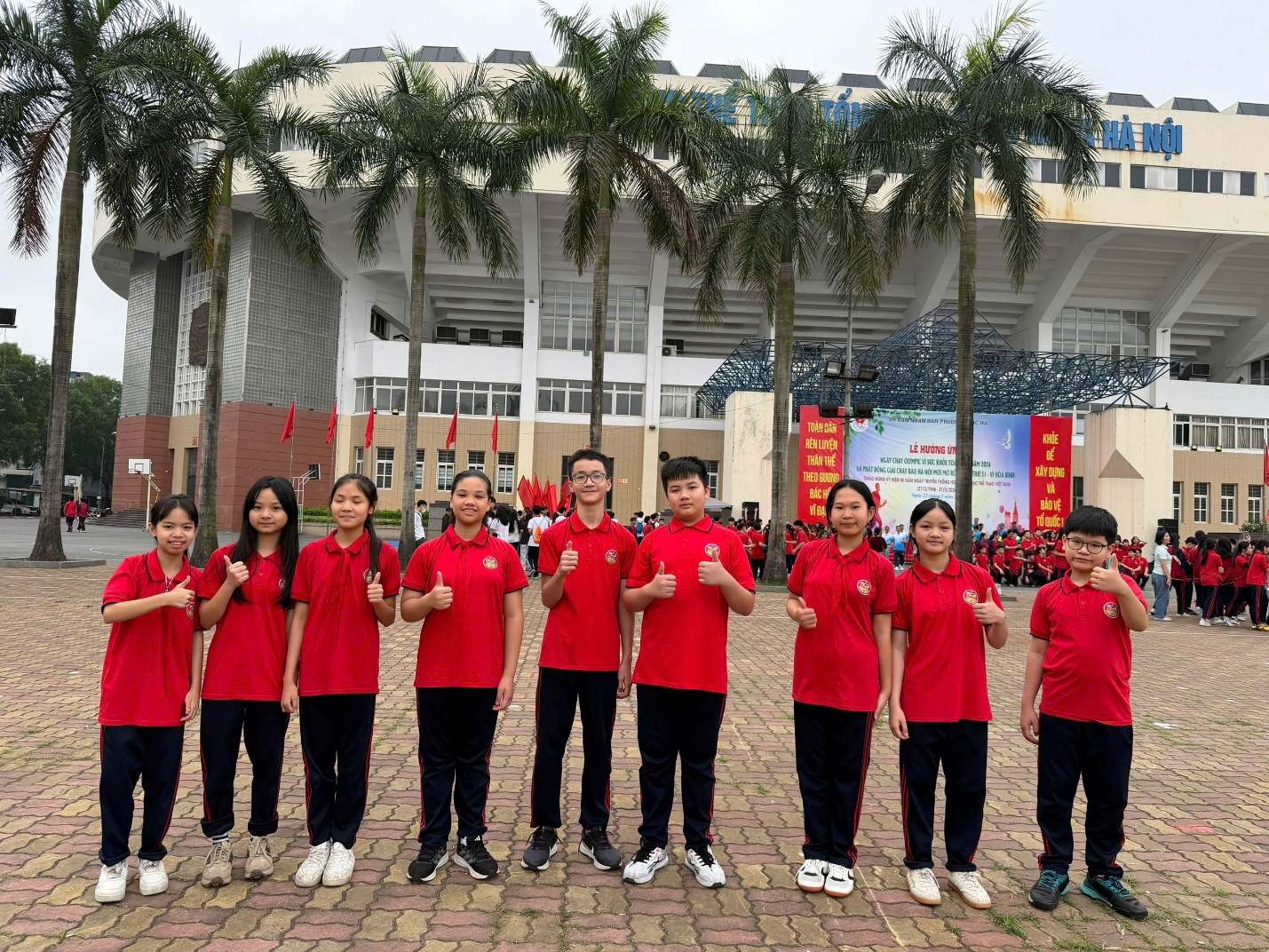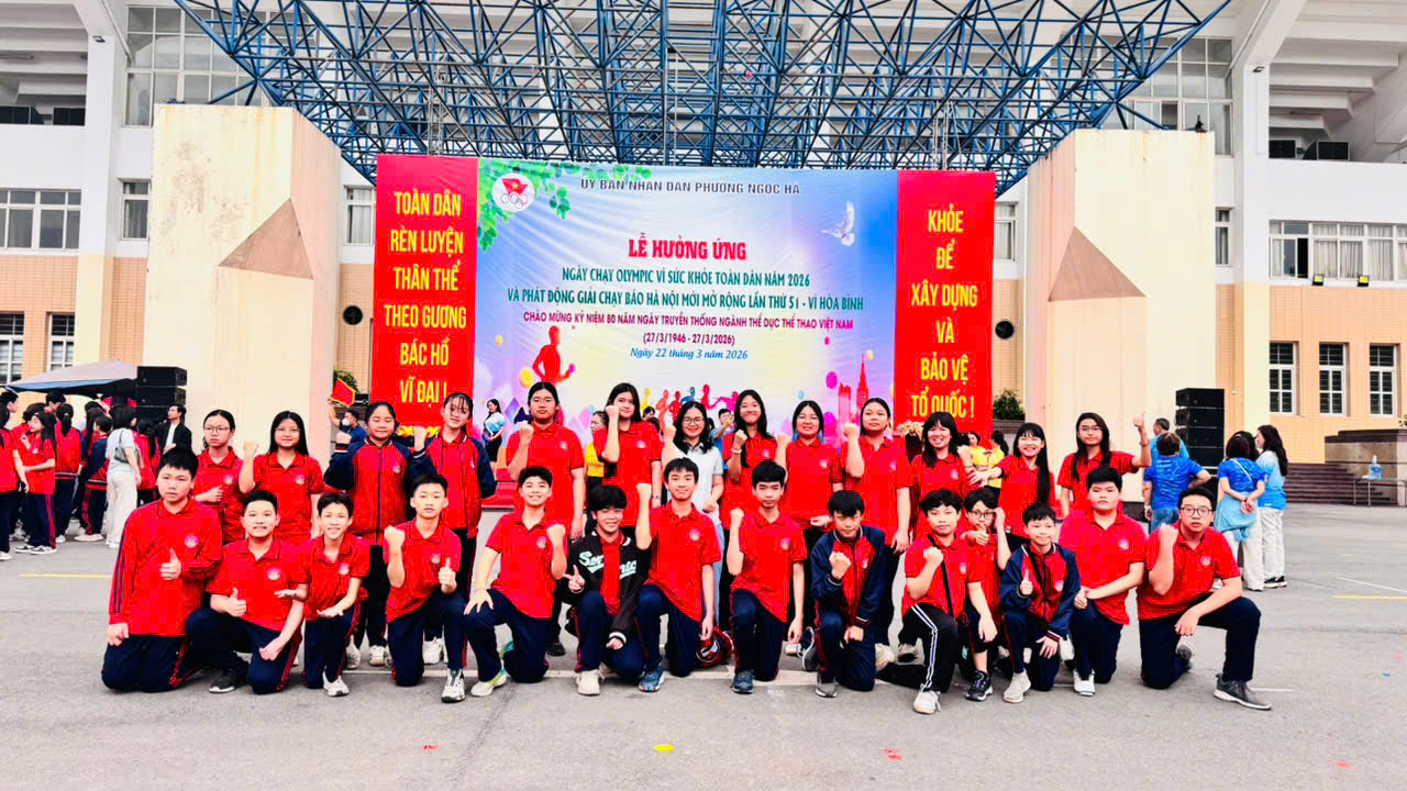 Tại buổi lễ, các em học sinh còn tham gia phát động “Giải chạy Báo Hà Nội Mới mở rộng lần thứ 51 - Vì hòa bình”, hướng tới chào mừng kỷ niệm 80 năm Ngày truyền thống ngành Thể dục Thể thao Việt Nam (27/3/1946 - 27/3/2026). Sự kiện không chỉ là dịp để các em rèn luyện thể lực mà còn giáo dục tinh thần đoàn kết, ý chí vượt khó và niềm tự hào dân tộc.